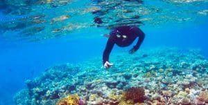 All snorkel gear is complimentary as part of your charter and supplied by Aqua Dive here at Coral Sea Marina. Their staff will fit you out with custom sizes for masks, snorkels and fins and give a brief overview on how to get the best out of your snorkelling experience. Wetsuits & Stinger suits are also available for hire (stinger suits are recommended between November and April)