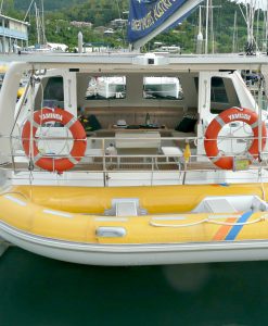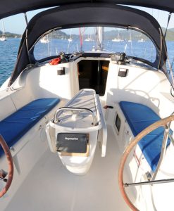For sailing performance; a full batten main. For easy sailing; all ropes are led to the cockpit. She has a roller furling self-tacking headsail, twin steering and an autopilot for the discerning sailors. Suitable for three couples, two families and mixed groups. She will also perform equally well under power.