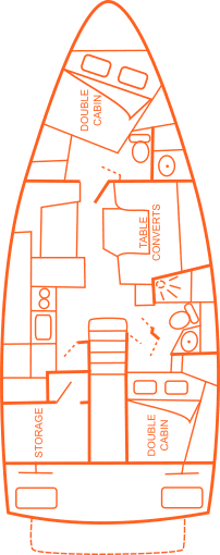 Featuring two double cabins, two bathrooms and the saloon equipped with a drop-down table converting to another double bed she can take up to 6 people. Boasting a large, shaded cockpit perfect for entertaining, she is ideal for couples, small groups or family.