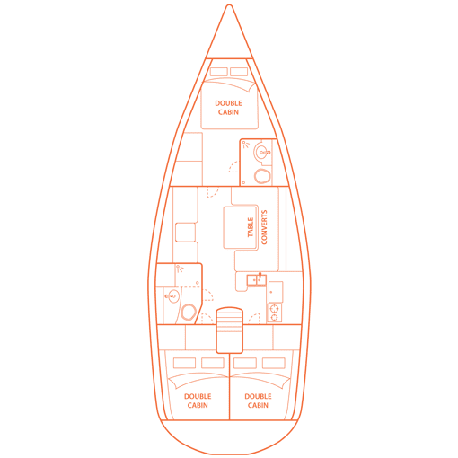 Integrating all the latest improvements and key innovations of the Sun Odyssey line, this 41 foot sailboat is fast and easy to manoeuvre. Featuring 3 double cabins and 2 bathrooms, the spacious saloon includes a drop down table converted to a fourth bed. Up on deck enjoy twin helms, seating for 6 comfortably, dodger & bimini for weather protection and a stern duck board to enjoy easy access for swimming from the boat.