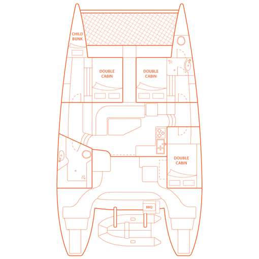 This beautiful sailing catamaran exudes modern design with sleek lines. This state of the art vessel has two private queen size cabins, one with ensuite and one double cabin. There is a full sized bathroom with an enclosed shower stall, toilet and vanity. This boat can comfortably accommodate 6 – 8 people.