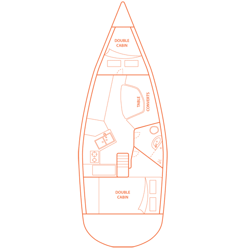 Cabin comfort is enhanced with a longer v-berth and a forward hanging locker. The galley has custom solid surface counter tops and a front-loading stainless steel refrigerator plus an additional top loading, well-insulated freezer. Plenty of room to move on backdeck which is also fitted with BBQ, bimini and dodger."